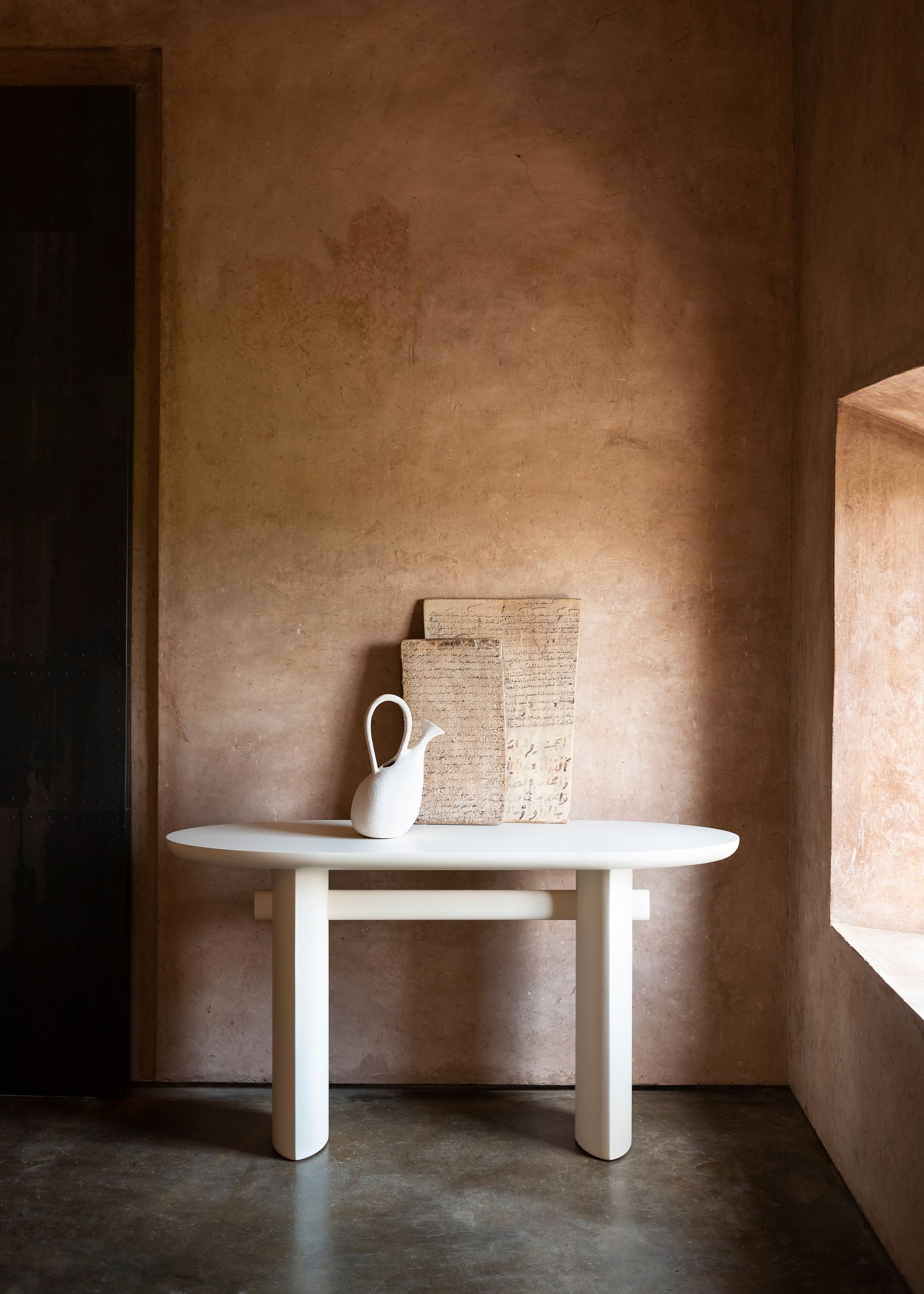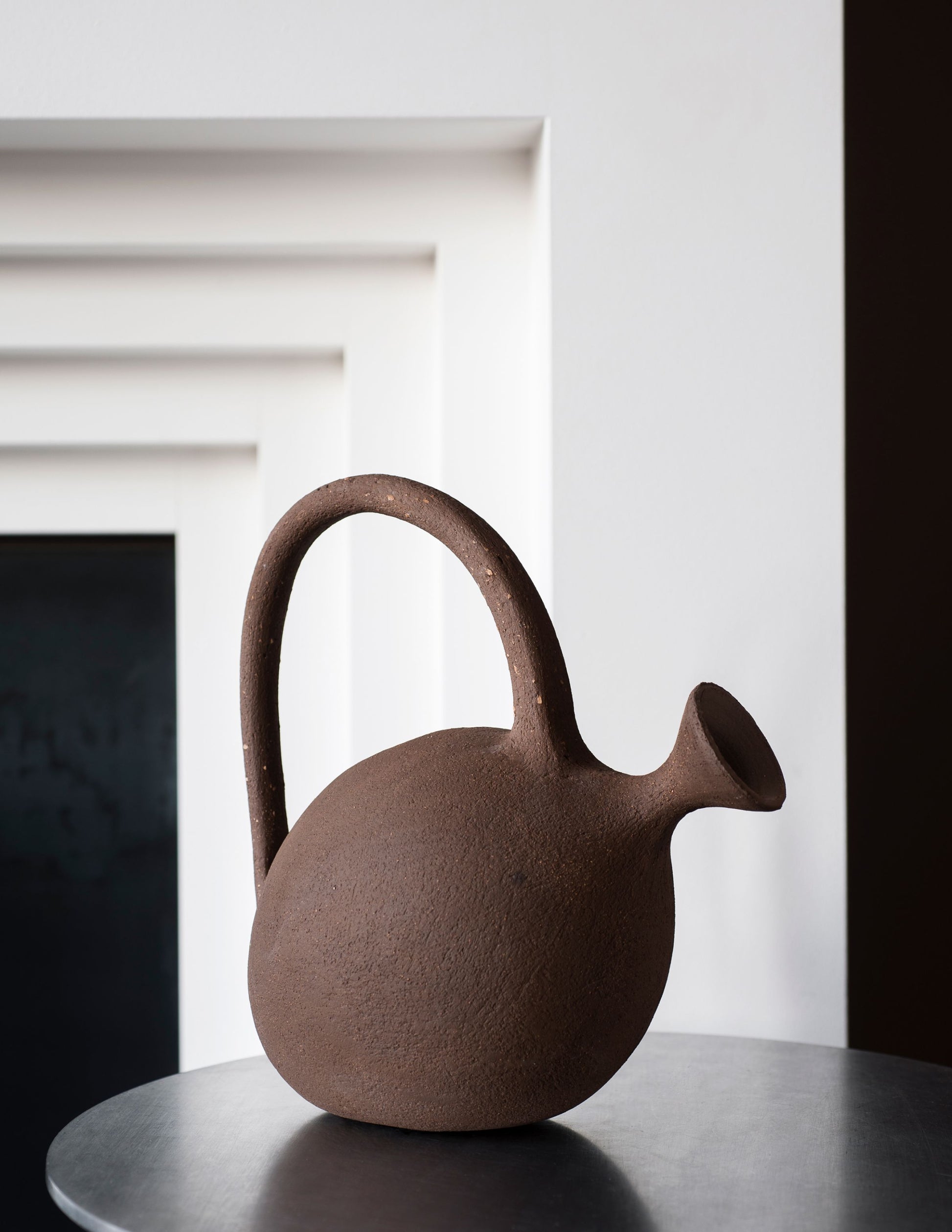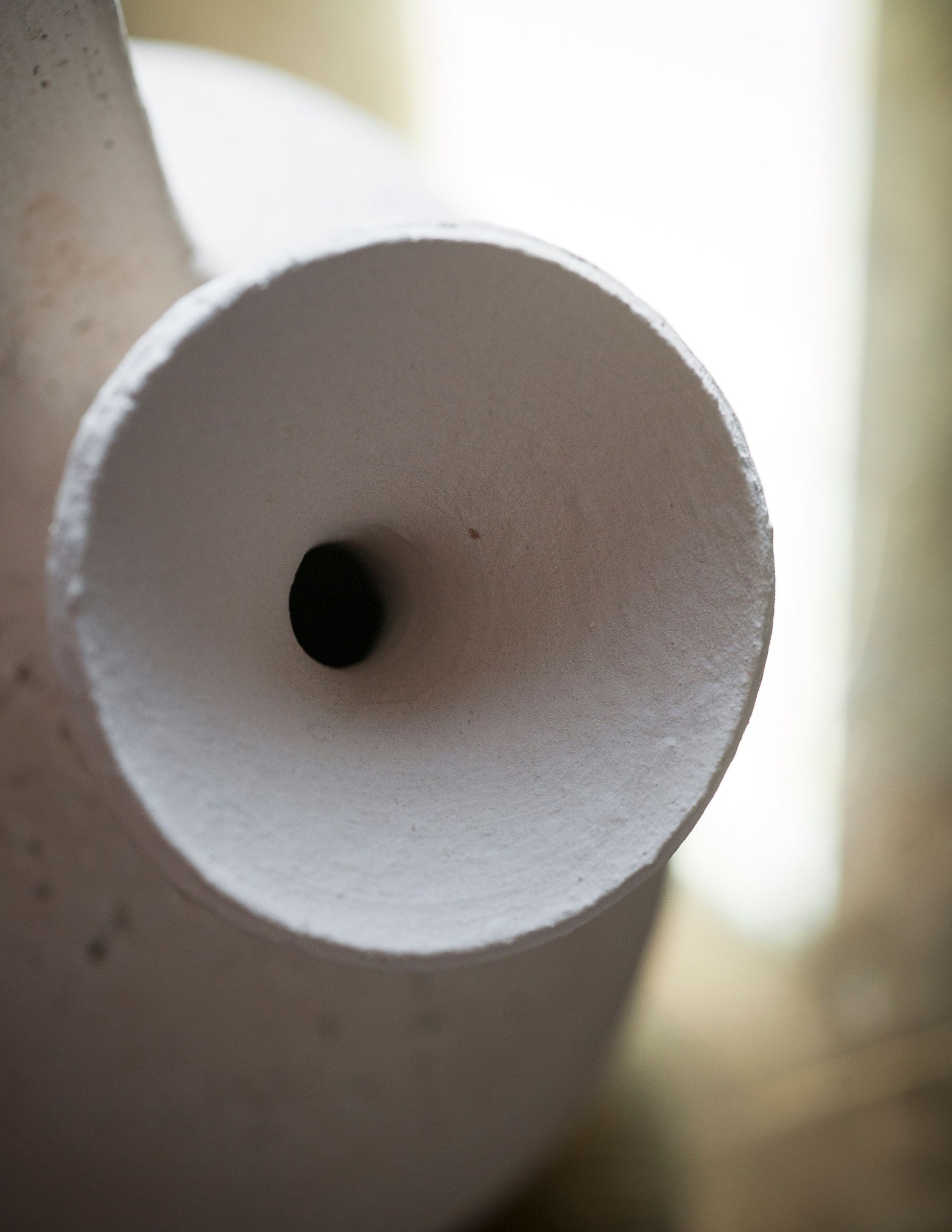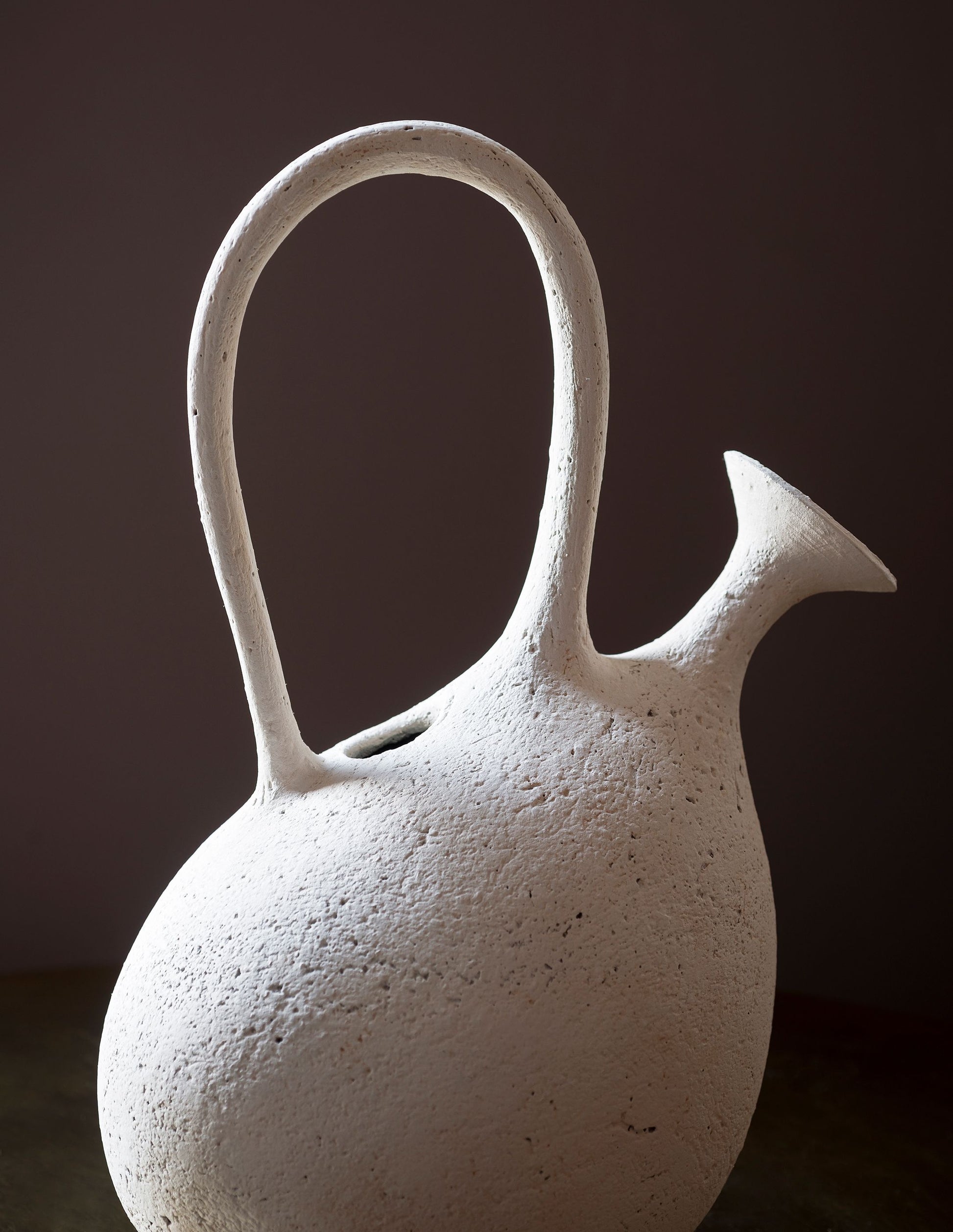L'amphore Aqua Regis évoque les formes de célèbres vases antiques et les réinterprète de manière contemporaine, en valorisant la matérialité de l'argile dans deux tons qui rappellent les couleurs de la terre. L'amphore est un témoignage extraordinaire des cultures anciennes. Cet objet autrefois utilisé pour transporter les aliments nous permet aujourd'hui d'approfondir de nombreuses connaissances historiques et archéologiques. Dans cette version contemporaine, Studiopepe la baptise Aqua Regis – du nom de la solution alchimique capable de dissoudre l'or – et la transforme en un vase aux formes douces, doté d'une seule anse latérale et d'une large surface d'appui à la base, réalisé au tour en engobe semi-réfractaire.