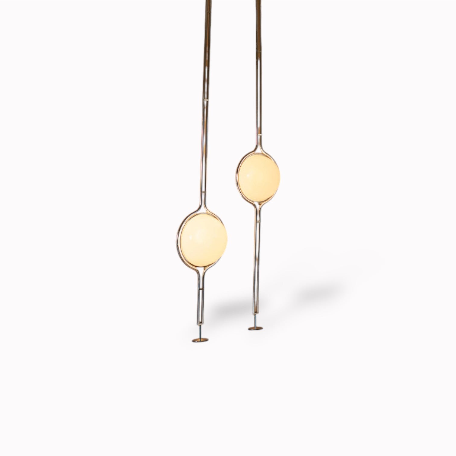 La lampe Dana, signée Jean-Pierre Garrault et Henri Delord, est une pièce emblématique inspirée de l'art des années 70. Rééditée par Tacchini, elle se distingue par sa sphère lumineuse qui semble flotter, portée par une structure en métal chromé minimaliste et audacieuse. Conçue à partir d’une approche inspirée du « Meccano », cette lampe sol-plafond est une œuvre intemporelle qui évoque la beauté d’une lune ascendante, apportant une touche unique et poétique à tout espace.