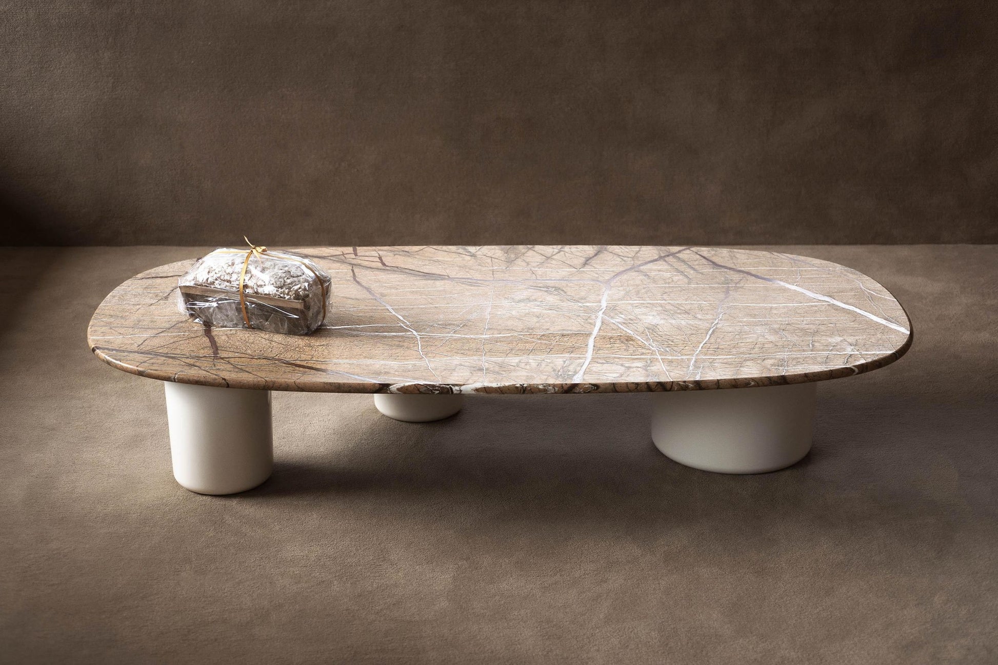 Gian & Pan est une famille de tables basses inspirées des fenêtres emblématiques du bâtiment Lina Bo Bardi — SESC Pompeia. Ces tables explorent les contrastes de matériaux et de couleurs, créant un dialogue fascinant entre lumière et forme. Les tables basses Gian & Pan conçues par Studiopepe pour Tacchini combinent le marbre et le béton dans des formes fluides et organiques. Les tables sont librement configurables, avec des options pour le plateau - disponible en trois types de marbre distingués par leurs tons et leurs veines - et les pieds en béton, disponibles en trois couleurs brillantes.