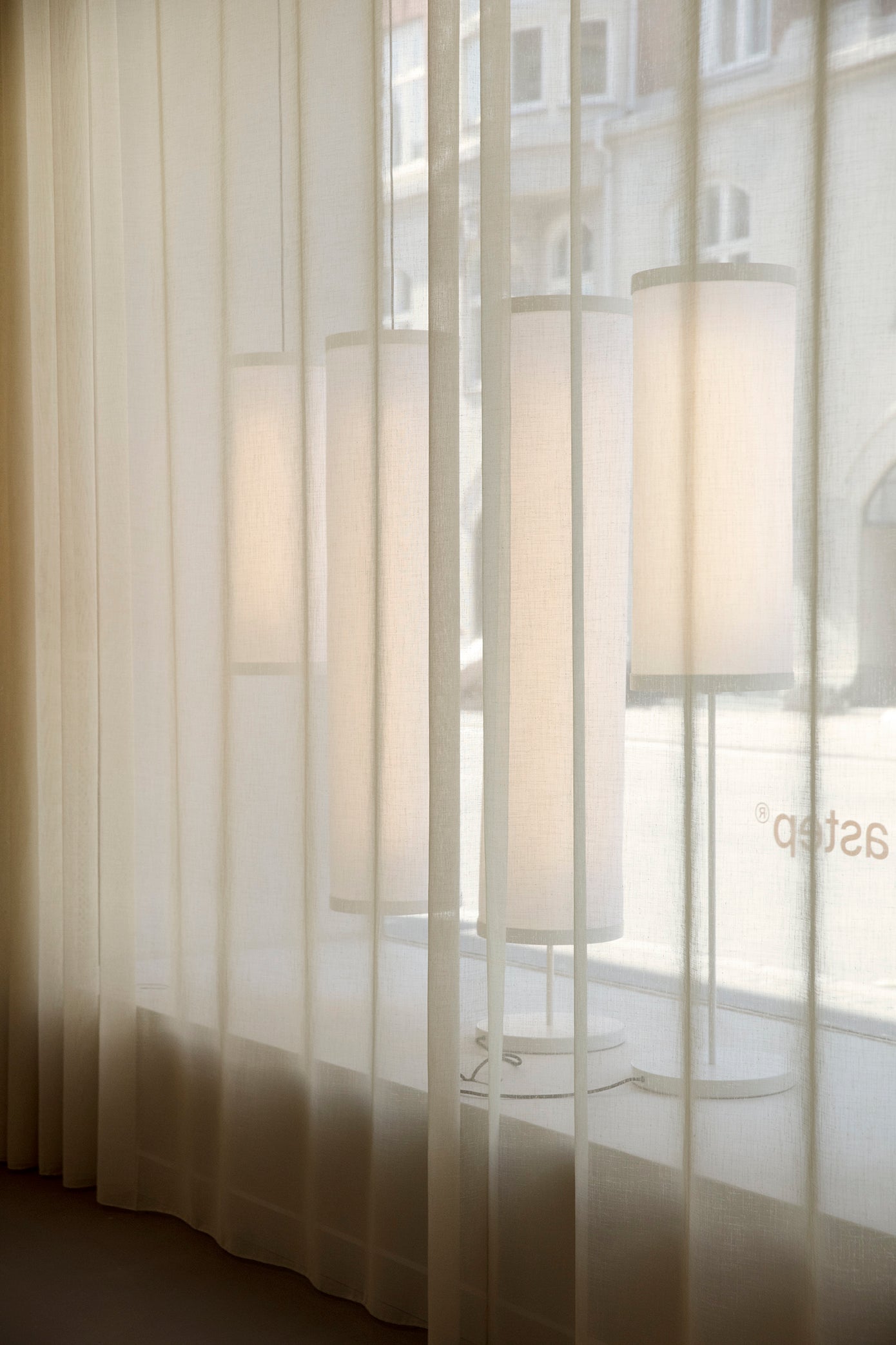 Une transparence parfaite se crée, tout en enveloppant les anneaux en aluminium moulé sous pression, permettant à la lampe de se fondre dans le décor. À la fois sculpture, solution acoustique et source lumineuse, Isol peut être utilisé dans de nombreuses combinaisons et dans des environnements privés et publics, comme une façon esthétique d'apporter des propriétés acoustiques à un espace. Seul, il convainc par son autorité silencieuse offrant un sentiment d'intimité. En multiples, son caractère distinctif est renforcé — dans la version suspension, en outre, en reliant les anneaux pour étendre la puissance d'éclairage et d'absorption du bruit. Isol Floor et Isol Suspension sont disponibles en finition crème et noire, tous deux disponibles en deux hauteurs.