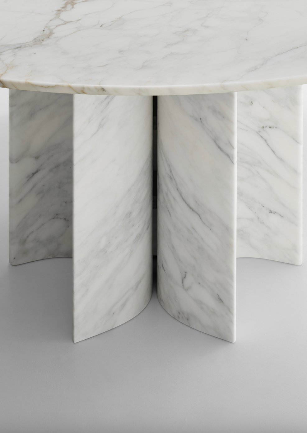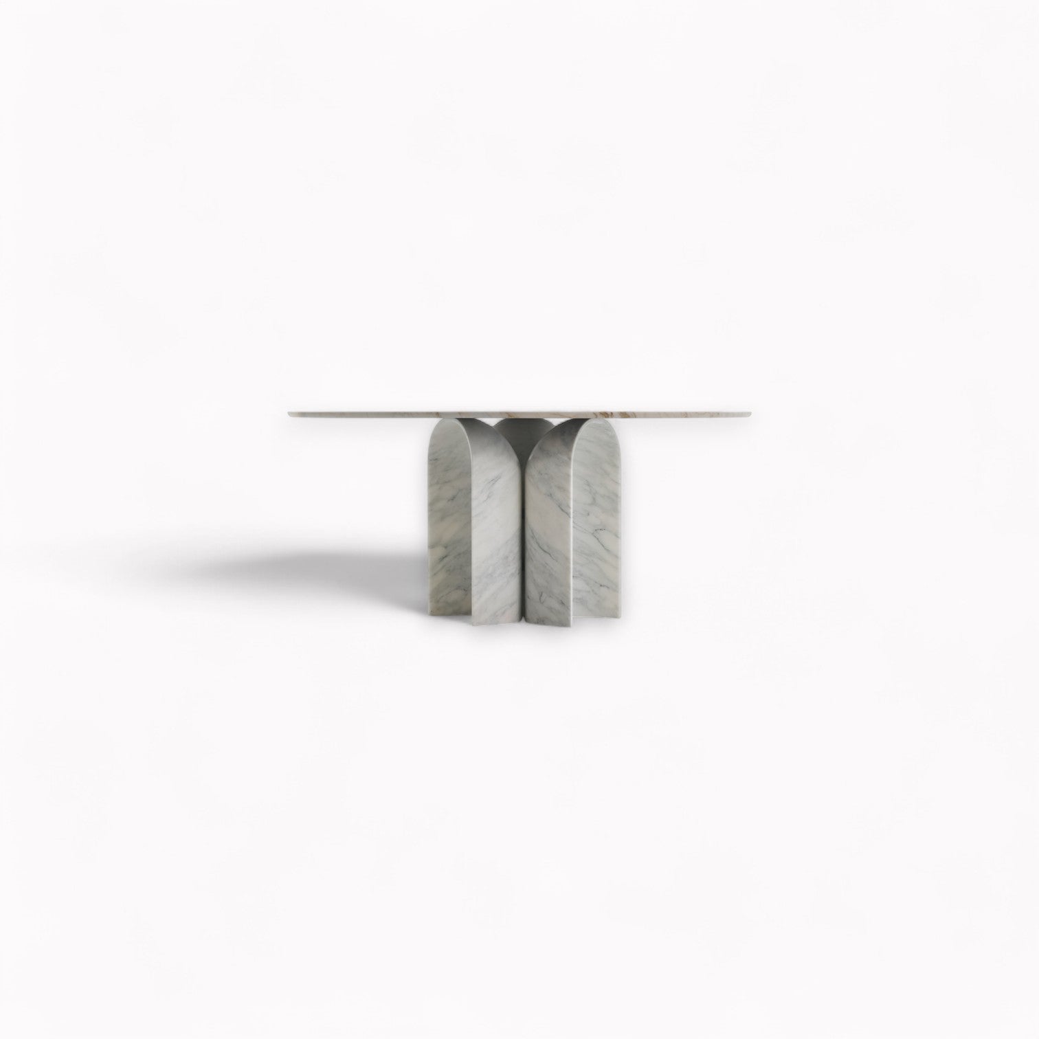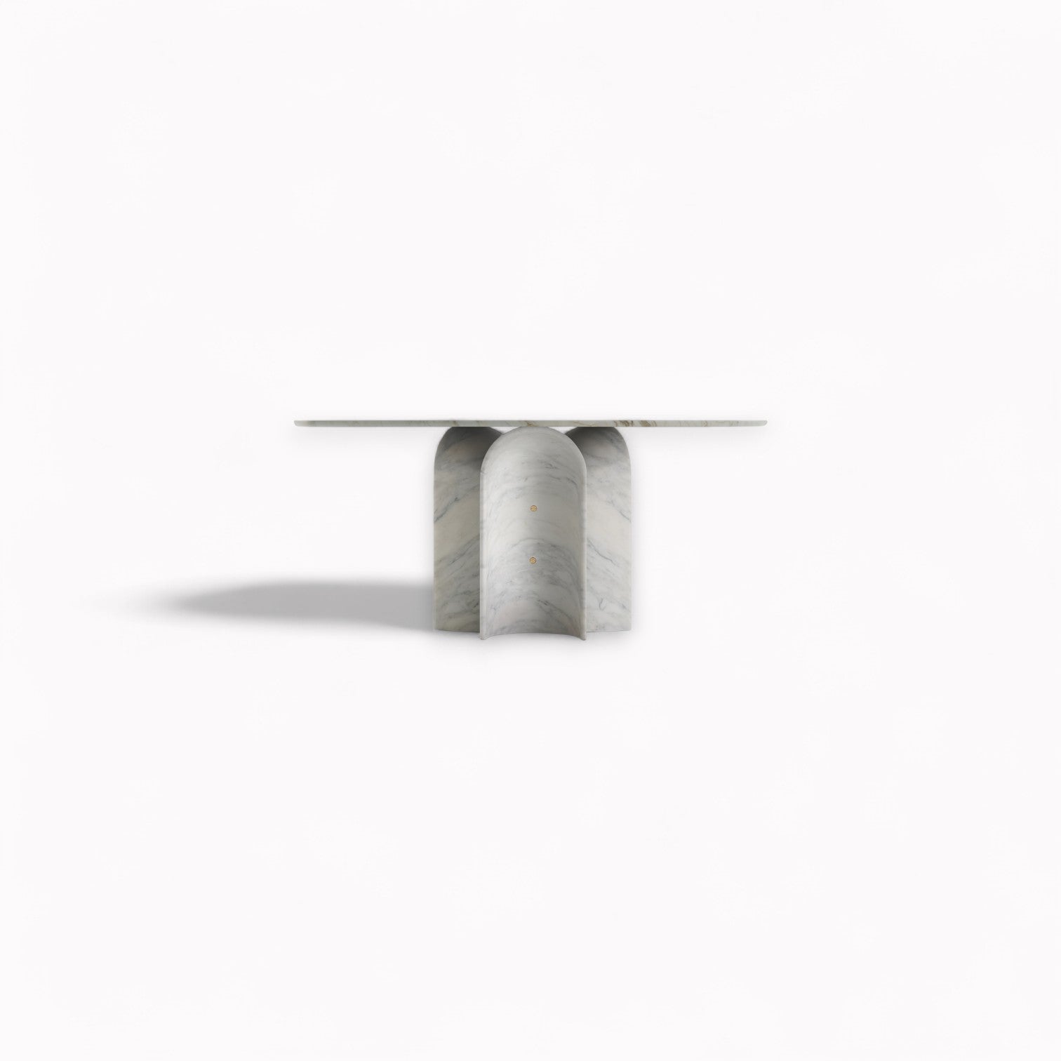 Synthèse parfaite de la matière et de la forme. La table Le Cupole, conçue par Francesco Meda et David Lopez Quincoces , est un hommage à la pureté géométrique et à l'élégance sculpturale. Une pièce à l'impact visuel puissant, qui transforme la force de la matière en un geste d'équilibre absolu. Le piètement, composé de trois coupoles sculptées dans le marbre (cupole en italien), soutient le plateau avec une précision architecturale, créant un dialogue entre stabilité et légèreté visuelle. Les surfaces courbes et les lignes douces des coupoles renforcent la sensation de symétrie et de dynamisme. Le raffinement des détails se manifeste dans les formes arrondies et les inserts en laiton qui enrichissent la composition. Le jeu de proportions soigneusement calibré accentue le contraste entre la présence massive de la pierre et l'essentialité du design, sublimant l'harmonie entre le plein et le vide, la structure et la surface. La table Le Cupole est disponible en marbre Calacatta Oro et Nero Marquinia.