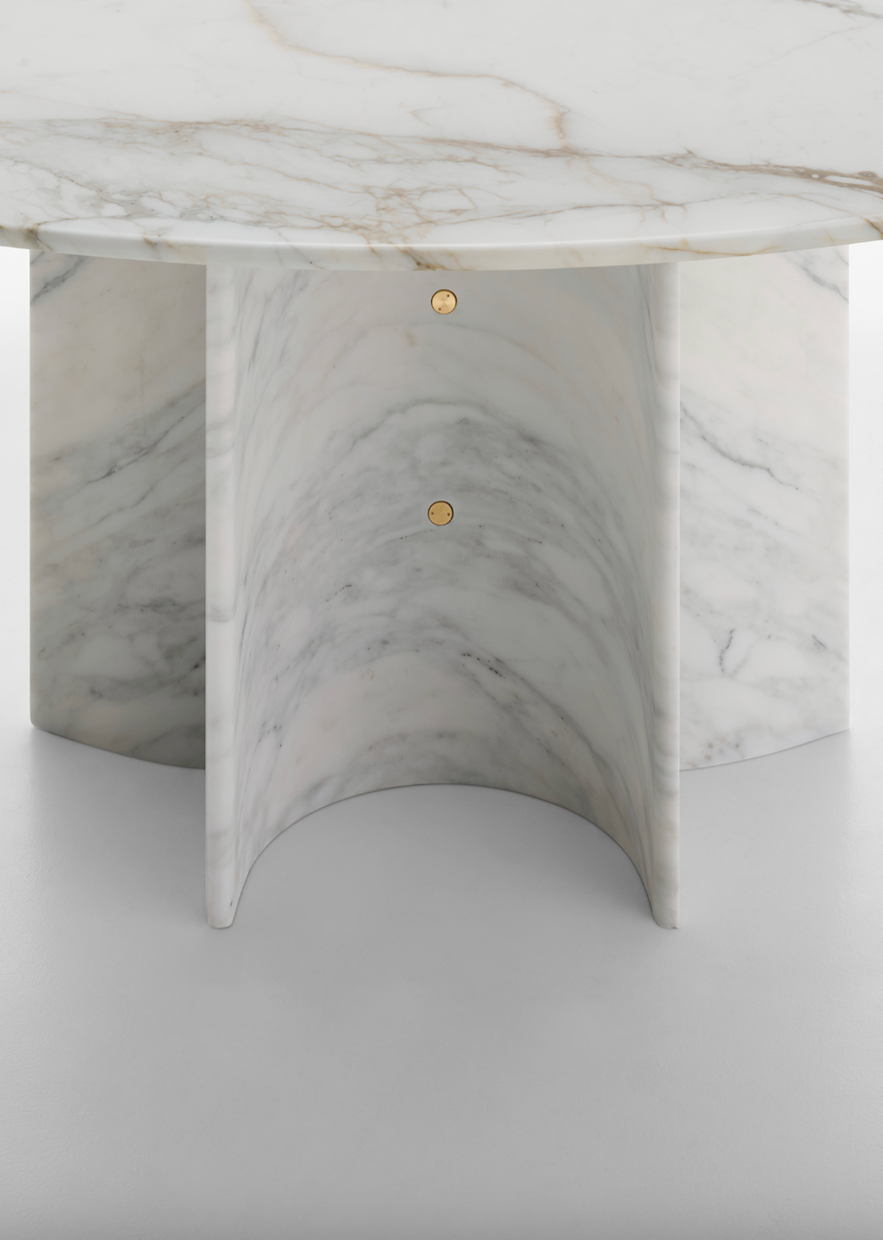 Piètement en marbre monoblocs polis et vis en laiton.