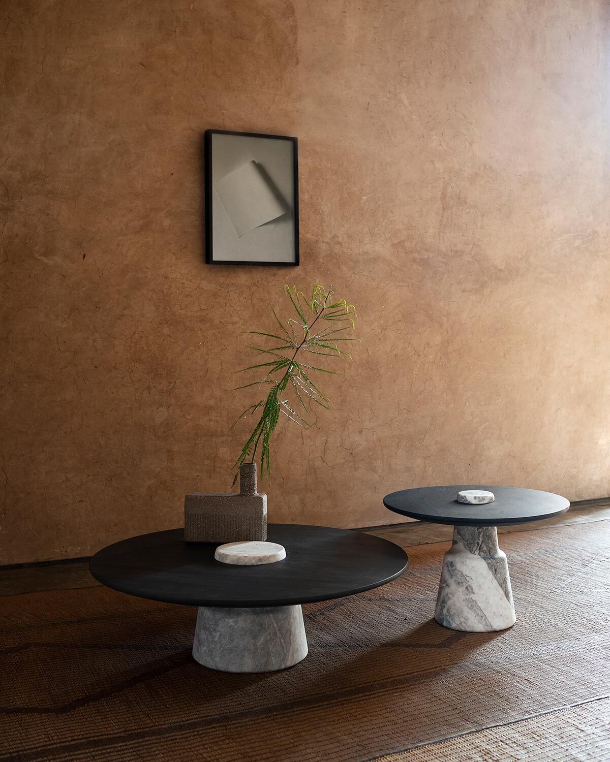Les tables d’appoint Mill racontent l’histoire de deux éléments précieux – le marbre et le bois – qui se rencontrent et se frottent l’un contre l’autre jusqu’à trouver l’emboîtement parfait. La designer Monica Förster revisite les tables classiques à support central, créant une rupture avec la surface traditionnellement plane et lisse du bois, qui semble ressembler à un moulin en pierre, avec un trou central caractéristique dans lequel s'insère le pied en marbre. Les tables Mill sont disponibles en deux tailles et coloris, avec un piètement en Breccia Bresciana ou Fior di Pesco Carsico et un plateau en frêne à pores ouverts teinté noyer ou gris foncé.