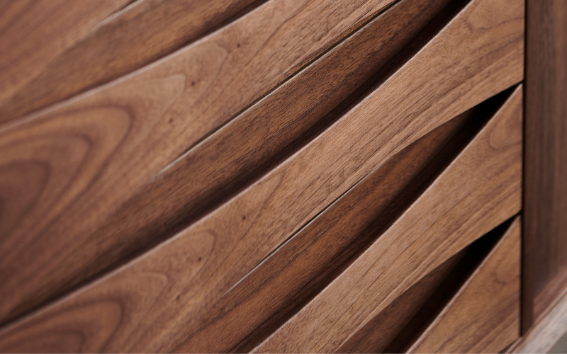 Structure en bois massif de chêne, d'hêtre et de noyer.