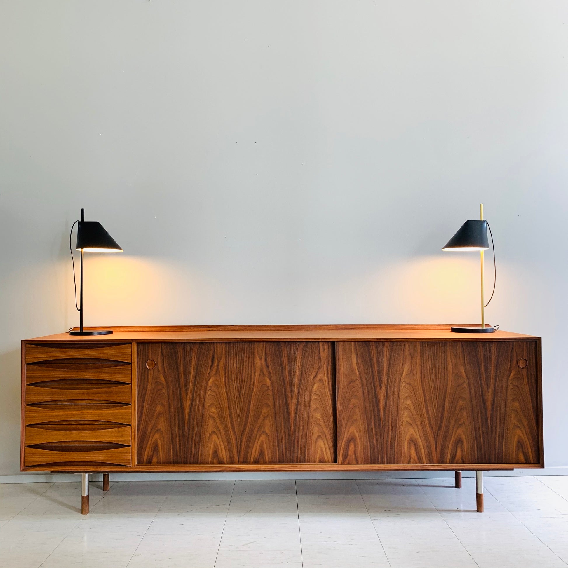 L'un de ses buffets les plus emblématiques, l'AV01, a remporté le 1er prix à la Triennale de Milan en 1957. Cette reconnaissance a consolidé le statut du buffet en tant que classique, et il reste tout aussi populaire aujourd'hui parmi les collectionneurs et les amateurs de design. Au cours de sa formation d'architecte, Vodder a été formé par le célèbre designer Finn Juhl, qui est devenu plus tard son mentor. Cette influence précoce est évidente dans le design de Vodder, marqué par l'approche de Juhl en matière d'élégance et de légèreté. En conséquence, les meubles de Vodder dégagent une beauté raffinée et une intemporalité. Ses créations, souvent créées dans des formes organiques et utilisant des bois exclusifs, sont à la fois esthétiquement belles et durables, leur permettant de durer des générations. Cette combinaison de beauté, de qualité et de fonctionnalité place Arne Vodder comme l'une des figures les plus importantes de l'histoire du design danois.
