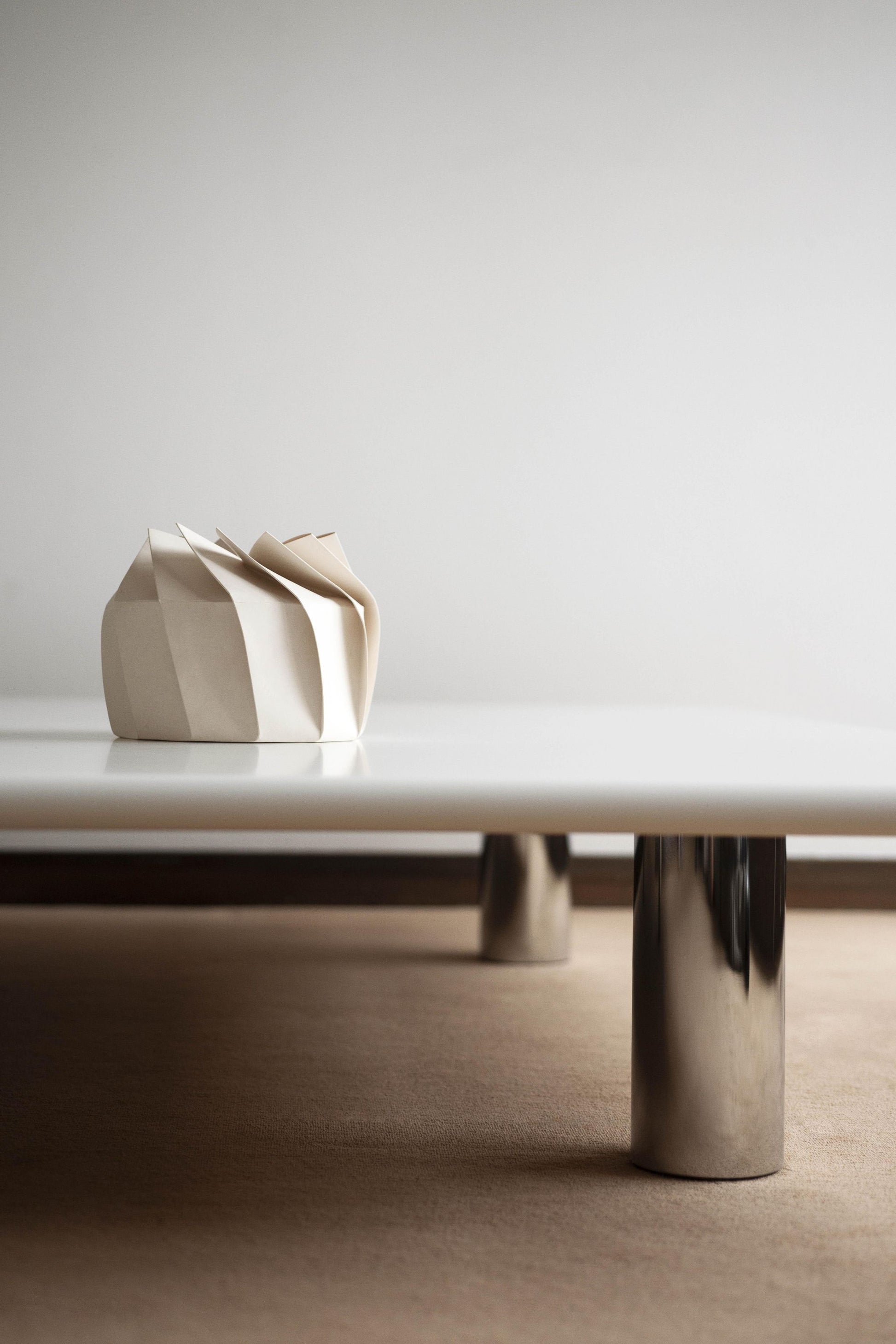 La table basse Tako incarne la polyvalence multifonctionnelle du mobilier contemporain dans une pièce simple et accueillante qui contribue à faire de la maison un espace facilement reconfigurable pour répondre aux besoins du moment. Conçu dans les années 1970 par Cini Boeri, Tako « n'est pas un meuble, mais une surface à utiliser », reflétant l'idée d'un design flexible et facilement reconfigurable qui sublime nos espaces. Quatre tubes chromés robustes soutiennent le plateau, généreusement dimensionné pour accueillir les petits rituels domestiques chers au designer : du support pour les objets du quotidien au prolongement du canapé pour se détendre. Sa faible hauteur, inspirée de la convivialité orientale, favorise la conversation et les échanges.